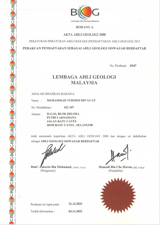 - Kerja-Kerja Penyiasatan Tanah Dan Pengujian Makmal Bagi Projek Pembinaan Bangunan Tambahan Jabatan Pendidikan Melaka Di Tapak Bahagian Teknologi Pendidikan Melaka, Melaka.(2021)
