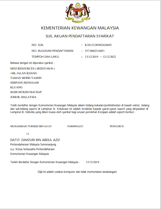 Mixi Resources is a fully Malaysian Bumiputera owned company. Mixi Resources was founded on 21st June 2018 with regards to the Registration of Business Act. 1956. This company was established to fulfill current demand project mainly in Geology. We also provide experienced and skilled workers to ensure a top-notch work quality, solely in promising excellent services in every project executed.